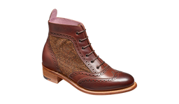 Grace 是一款系带靴,饰有绒面革或粗花呢面板部分和优雅的古巴鞋跟。为您的冬季装扮锦上添花。
